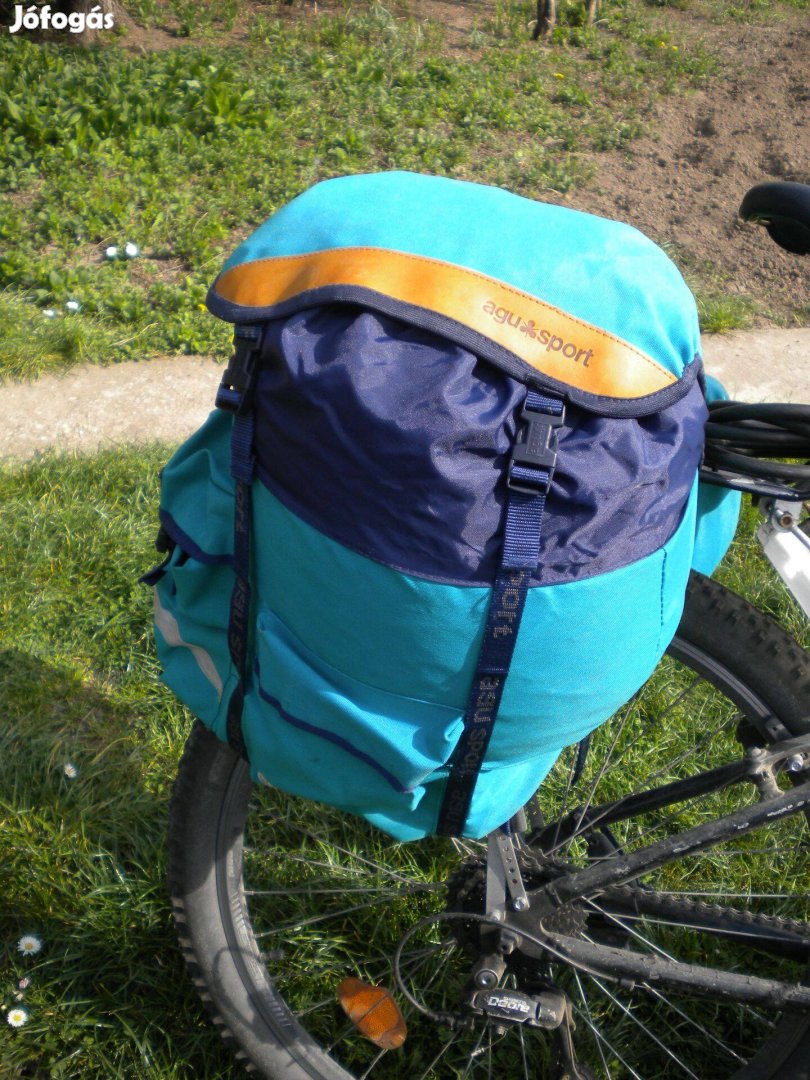 Nagy méretű, oldalanként 38 literes bringa táskák. Kerék felől merevített oldalfallal, két- két zsebbel, erős vízlepergetős anyagból, esővédő huzattal.külön -külön is használható. Klik-flix-es rögzítés, vékonyabb csomagtartó pálcához használható, kb. (1 cm ármérőjű), Használt, jó állapotú, klasszikus, holland darab.