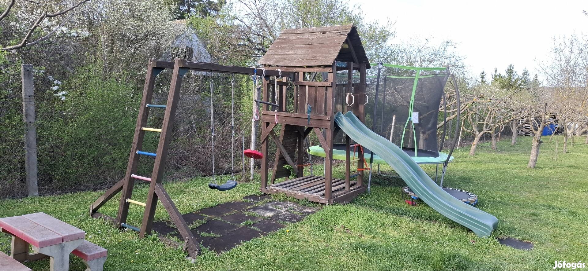 Eladó fa játszótér csúszdával, hintával!