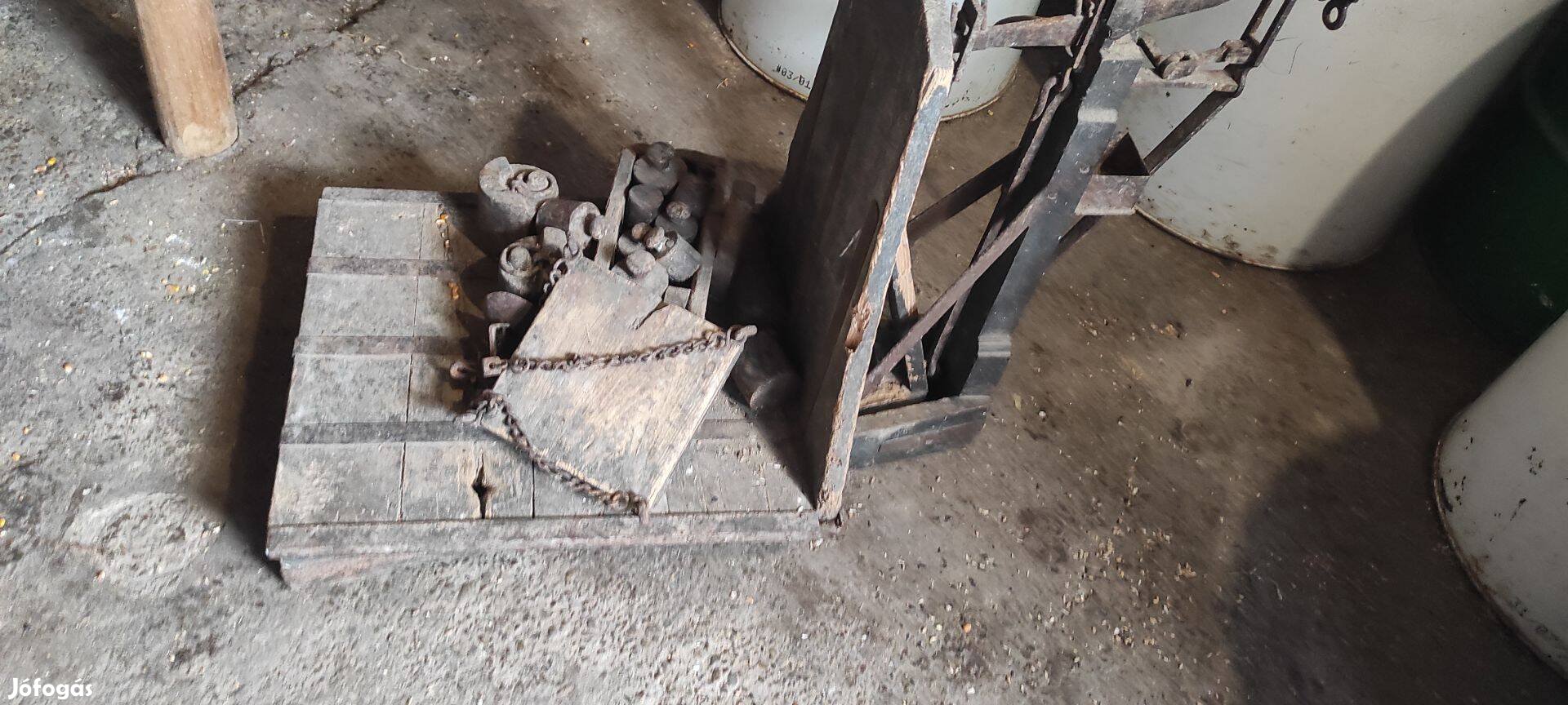 Eladóvá váltak a képen látható mázsák. 100kg famázsa súlyokkal 10 ezer ft, 500 kg vasmázsa 25 ezer forint. Megtekinthető Kunszigeten.
