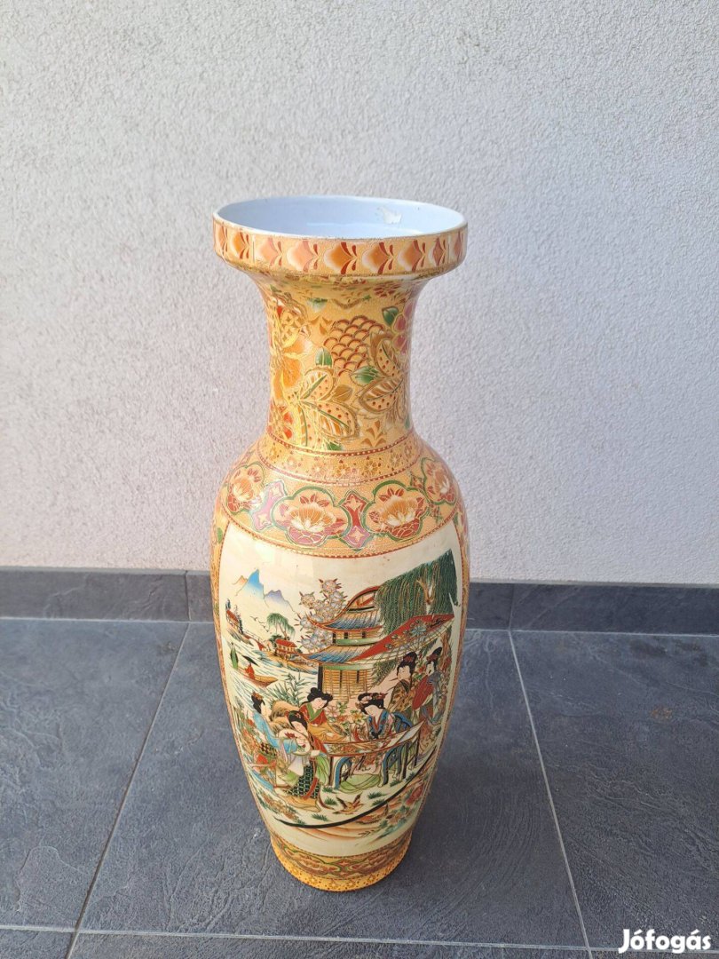 Eladó a képen látható kínai motívumos padlóváza. A felső része törött, de meg lett ragasztva, így a sérülés nem szembetűnő.