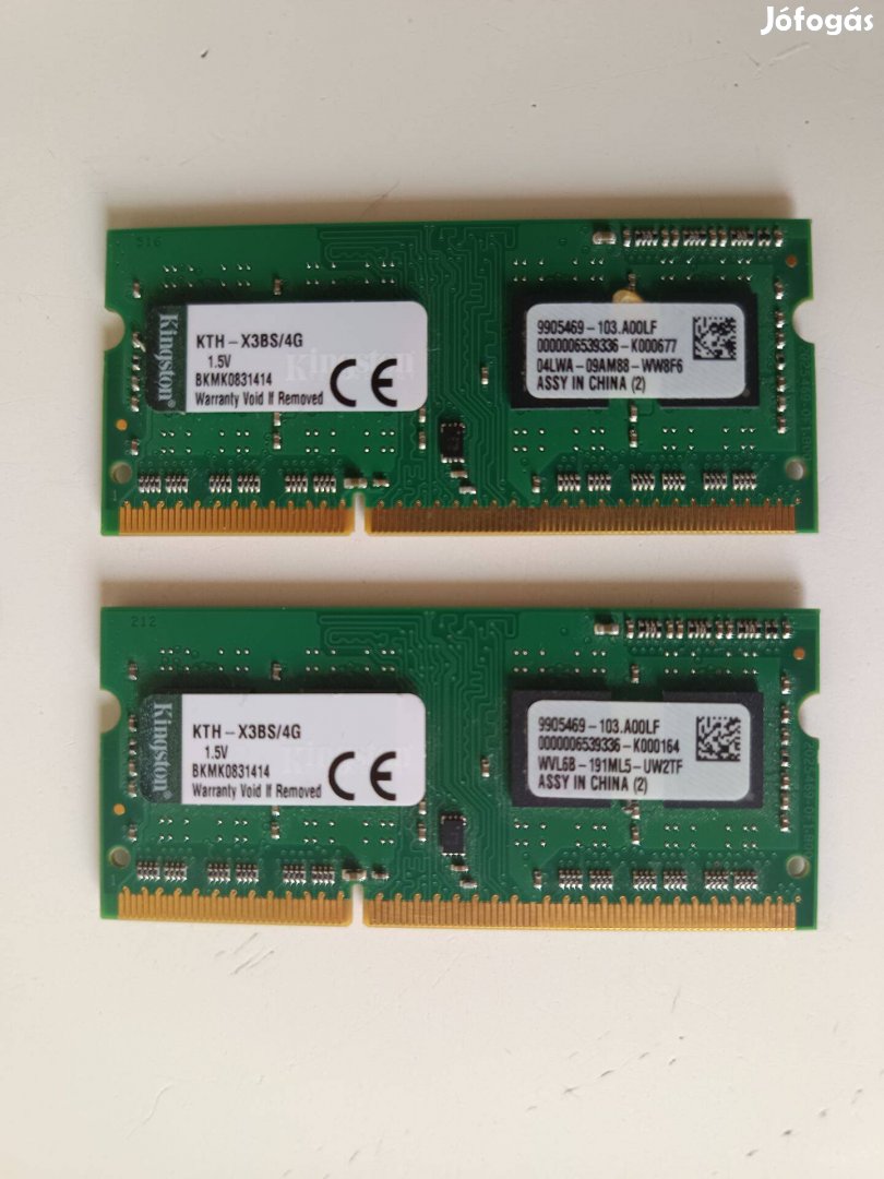 Eladó 2 db Kingston KTH-X38S/ 4GB DDR3 laptopmemória.