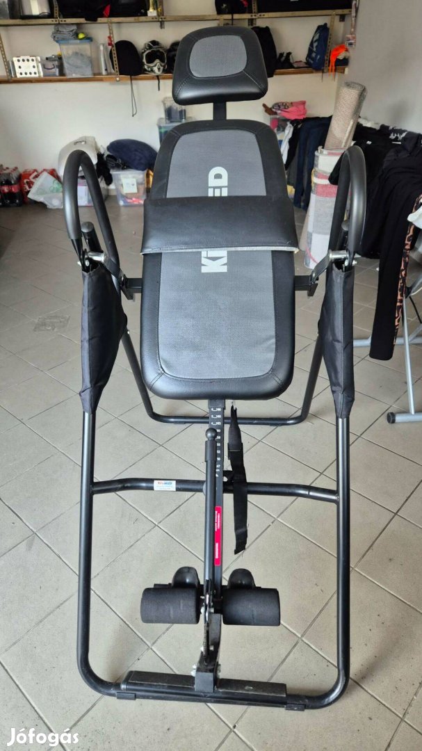 Eladó Kiromed nyújtásra szolgáló gravitációs állvány, ami az izomfeszültség csökkentését segíti elő. Szivacsozott fekvőfelülettel, összecsukható könnyített vázzal, rugó-gombos lábbefogóval rendelkezik.Magasság állítható dőlészsög állítható.