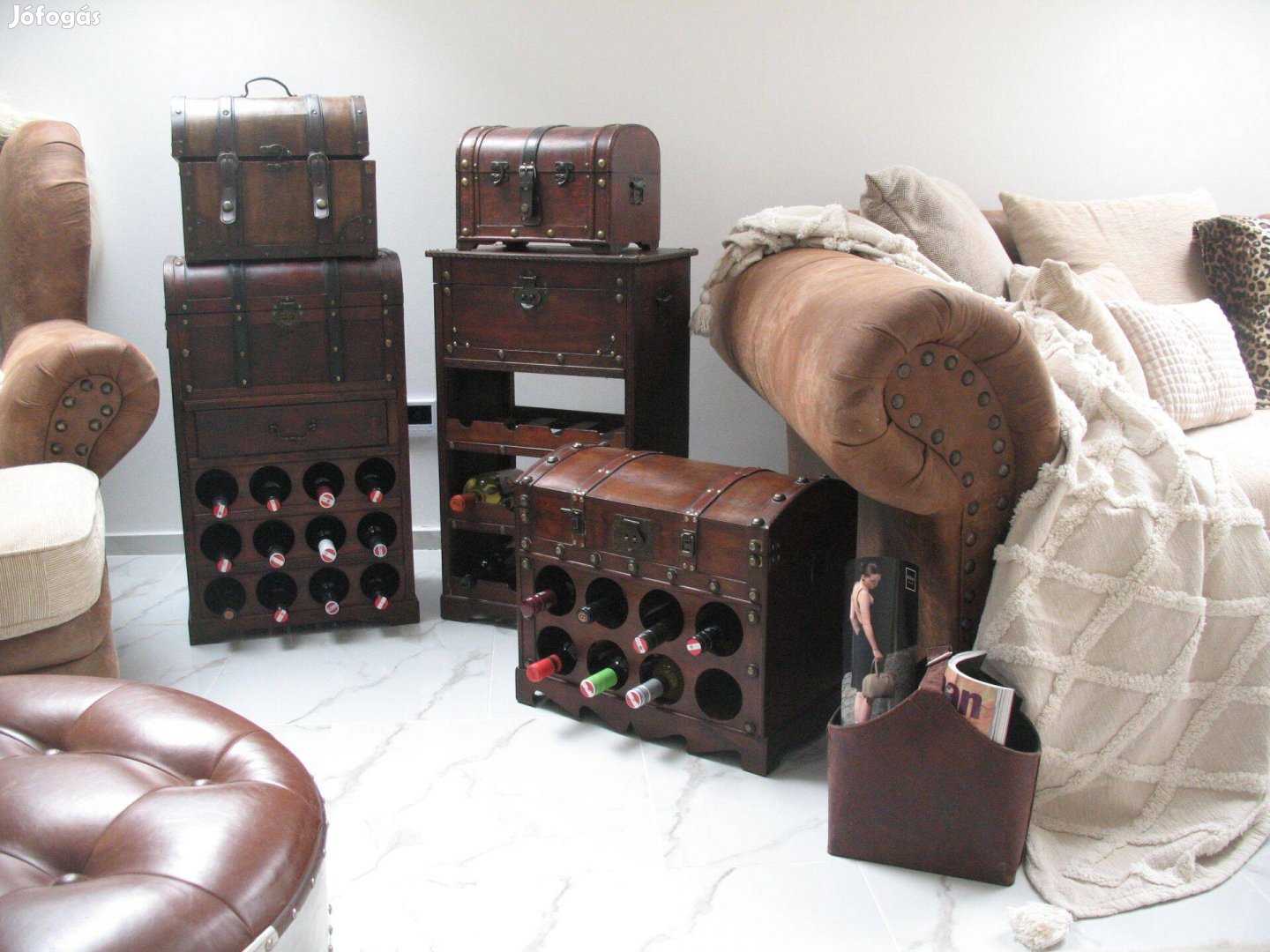 Költözés miatt eladó bortartó készlet 12 palackos íves tetejű 74 X44 X32 cm, 8 palackos íves 44 X48 X30 cm, Síma tetejű 74 X44 X30 cm, Nagyláda 92 X42 X44 cm, kis láda (1) 33X24X24 cm , Kis láda (2) 36X30X26 cm Kérem telefonon érdeklődjenek a 70/2333053-as számon. Kérem tekintsék meg a többi hirdetésemet is. Köszönöm