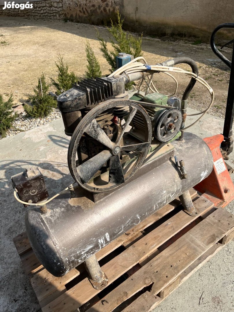 3 fázisú dugattyús kompresszor eladó 100 l-es tartállyal, Danfoss nyomáskapcsolóval, Pkzm-mel.