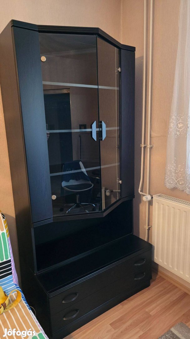 Tartozik hozzá egy fiókos íróasztal is, erről nincs kép, de állapotra ugyanolyan, mint a képeken látható szekrények.