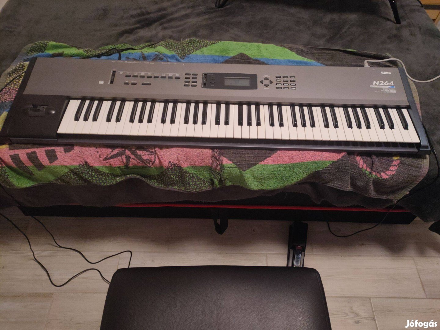 Eladó egy jó állapotú Korg N264 Music Workstation, új kijelző háttérvilágítással, minden normálisan működik rajta, a jojstick felöli műanyag oldal elem cserélve lett, de csak fekete színű volt hozzá, szerintem ha valaki keresgél a neten talál hozzávalót, de így is szuper lett.