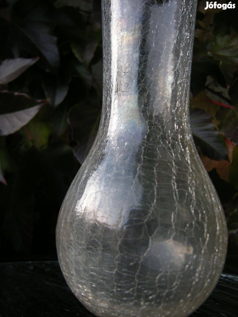 Hibátlan dekoratív fátyolüveg ritkább talpas váza, fényben csillogó sárgás fénytöréssel. magassága: 22cm, átmérő: 8cm.