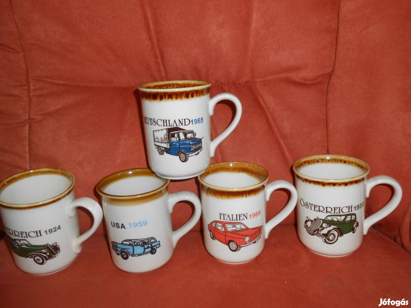Különleges, gyönyörű veterán autós bögre szett (5 db).