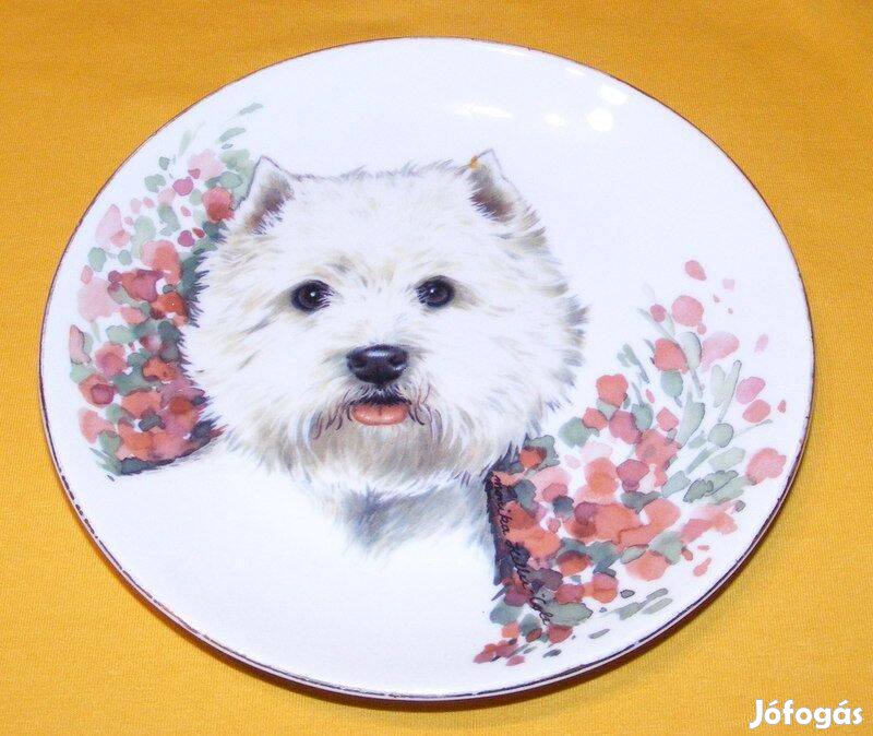 Kutyás porcelán falitányér