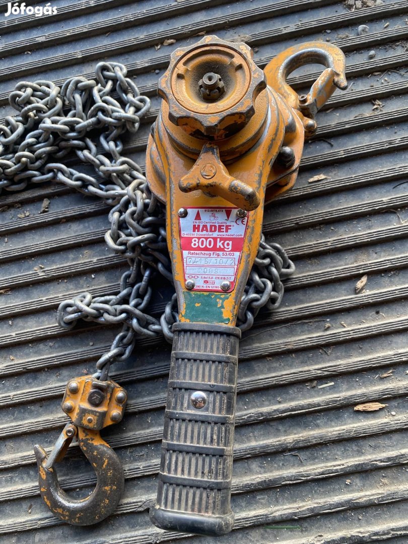 Eladó egy darab 800 kg-os és egy darab 750 kg-os láncos emelő. Ár: 35.000,-Ft/darab, kettő együtt : 60.000,-Ft