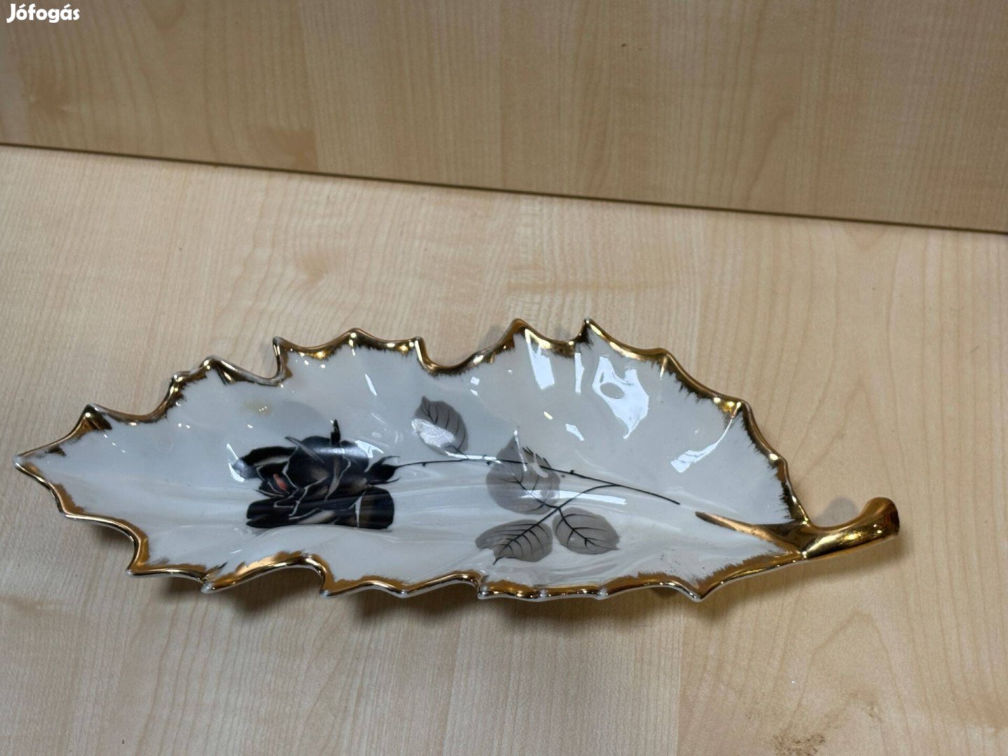 Levél alakú porcelán tálka, dísztárgy