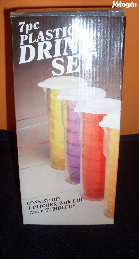 Limonádés, 6 db műanyag pohár,kancsóval szettben,új!/5