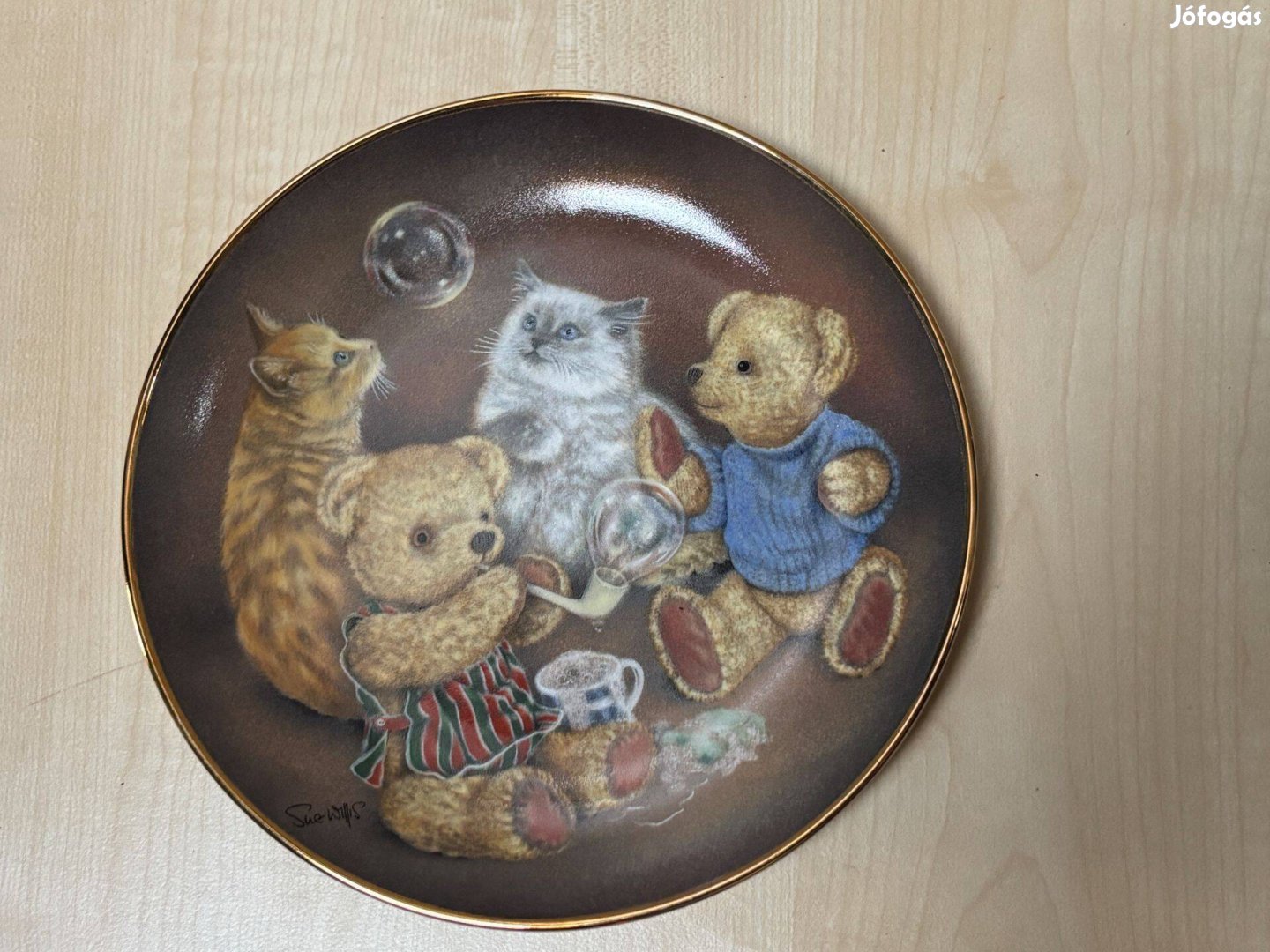 Macis, mackós porcelán dísztányér