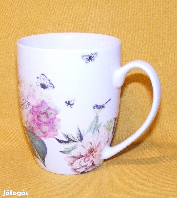 Madaras, virágos, lepkés porcelán bögre