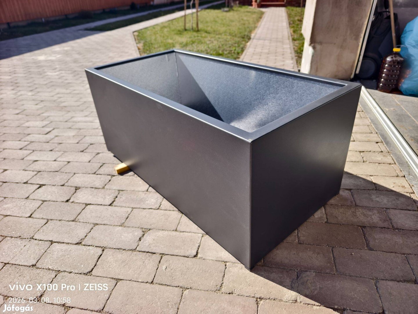 Teljesen új, jó minőségű fém láda. 120cm hosszú, 60cm széles és 50cm magas. Egyik sarkán apró karcolás van.