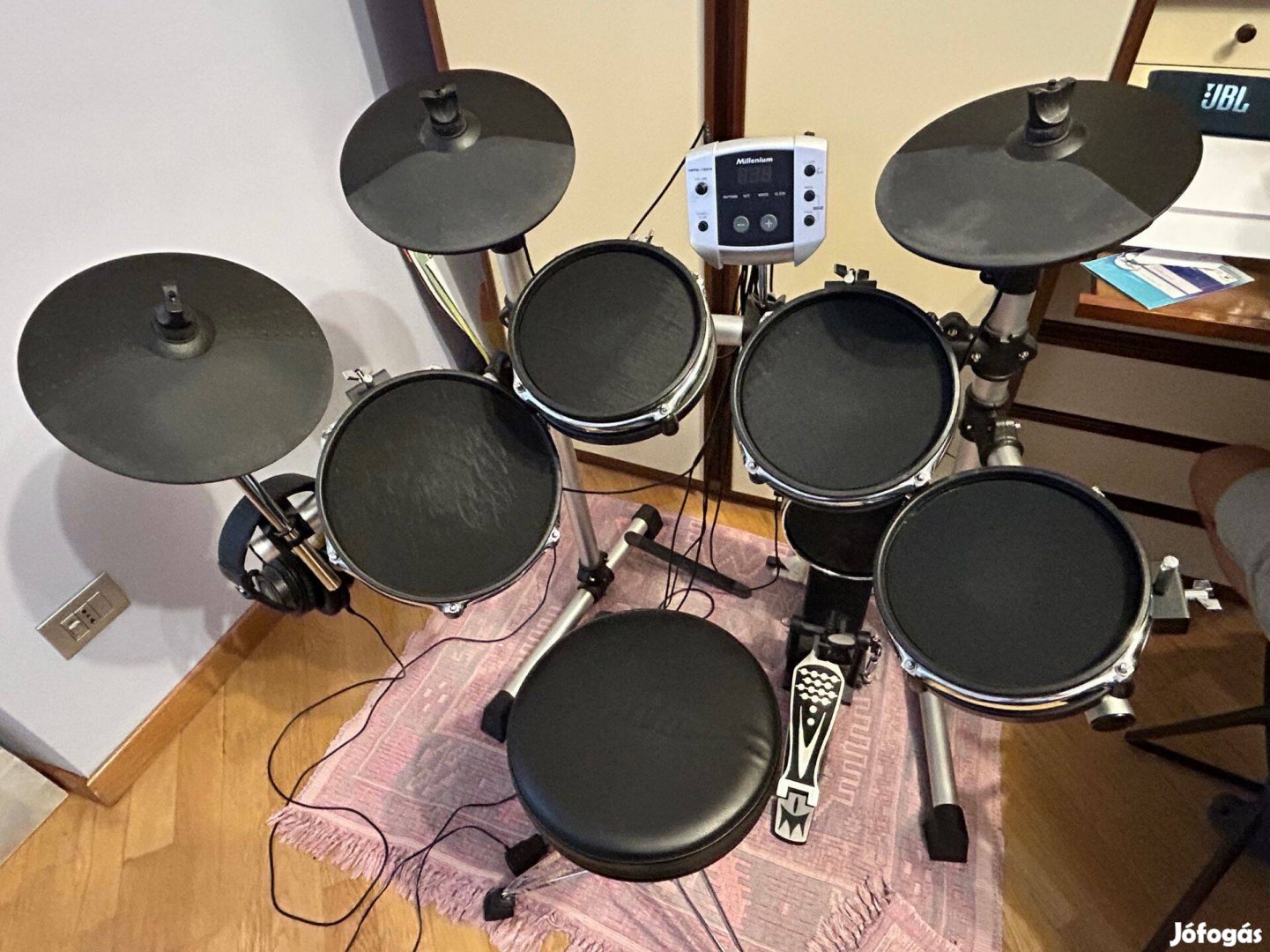 Igény szerint fejhallgatóval,erősítővel, és dobszékkel.