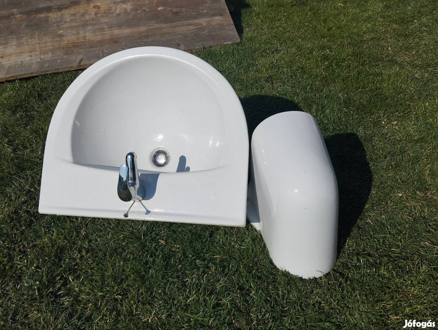 Mosdókagyló csappal es kerámia csőburkolattal eladó.A mosdó merete 60x50