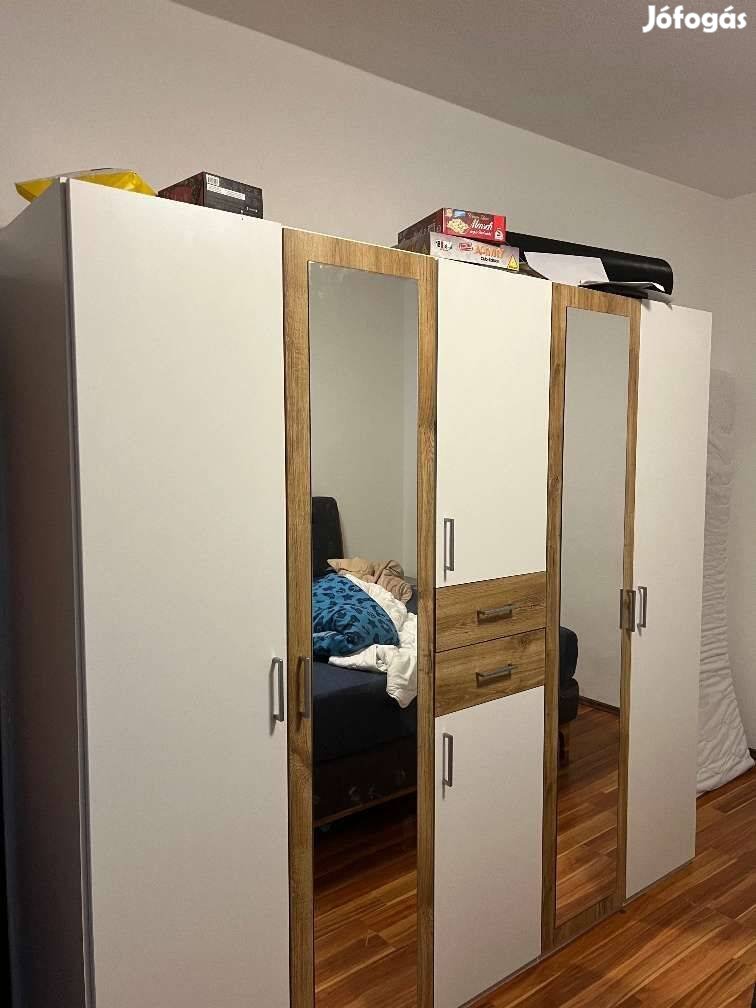 Matt fehér kanyon tölgy tükrös szekrény eladó! 205 cm magas