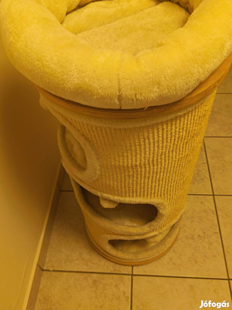 Eladó a képeken látható használt kívánó állapotban lévő macskabútor, kaparóhordó. Három barlang, szizál borítás , kényelmes fekhely. Mérete:88x39
