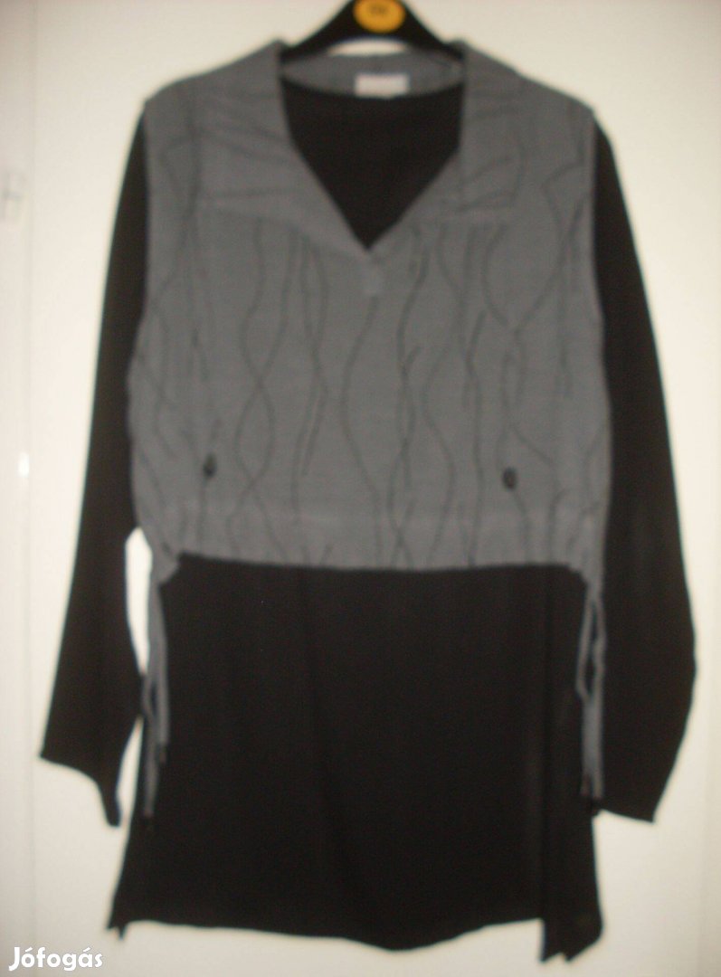 Női fekete ingblúz,szürke betéttel díszítve,M-méretű!/14