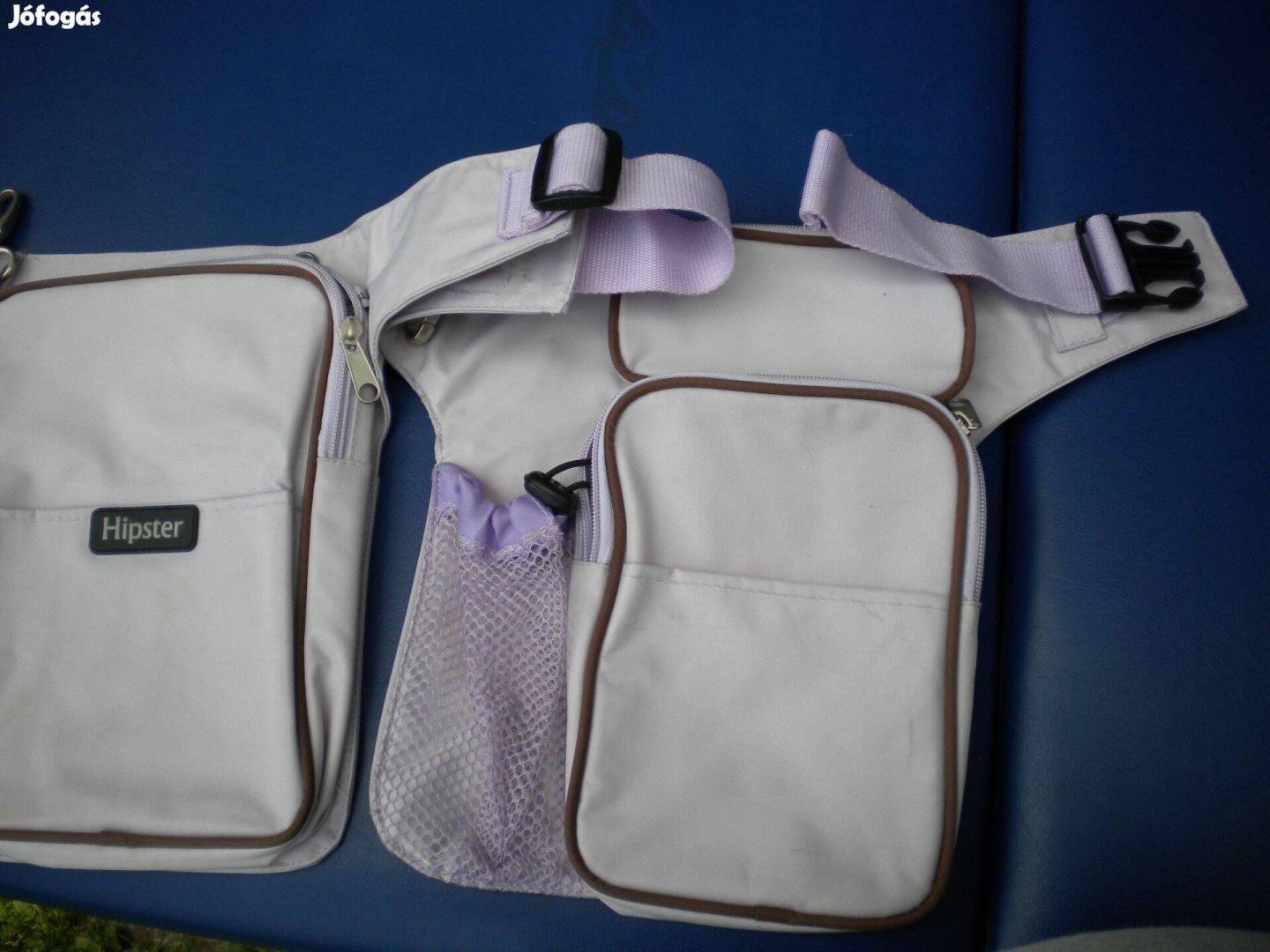 Hipster pink oldal / csípőtáska méret: 28x20 cm oldalanként, sok zsebes. praktikus, kulacs, kulcs, telefon...tartóval.