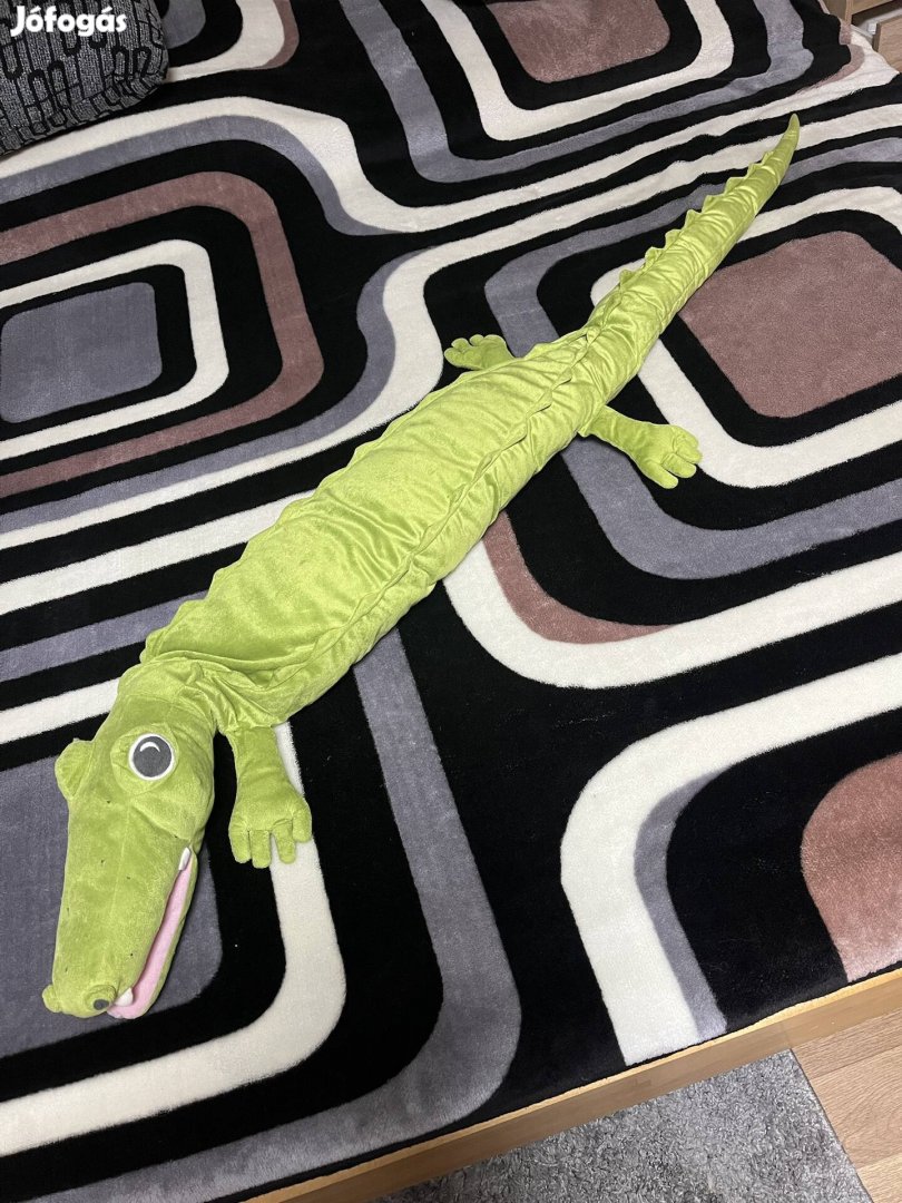 Eladó egy hatalmas, élénkzöld, extra puha plüss krokodil! Ez nem egy hétköznapi plüss: lenyűgöző, 160 cm-es hossza miatt a gyerekszoba központi eleme lehet. Szuper rajta hasalni, olvasni, vagy akár ágyvédőnek/falvédőnek is kiváló.