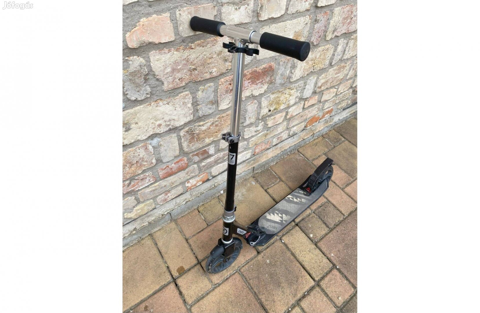 Decathlonban vásárolt, keveset használt roller eladó. Kifogástalan működésű, kezdeti próbálkozásokból adódó kisebb sérülések a felületi festésen előfordulnak. Összecsukott állapotban mérete 30x65 cm. 100 kg súlyig használható. Kormánymagasság állítható 3 fokozatban. Kezdő rollernek kiváló, könnyű, jól szállítható, jól gurul, nagyobb méretű kerekei megbirkóznak a murvás terepen is.