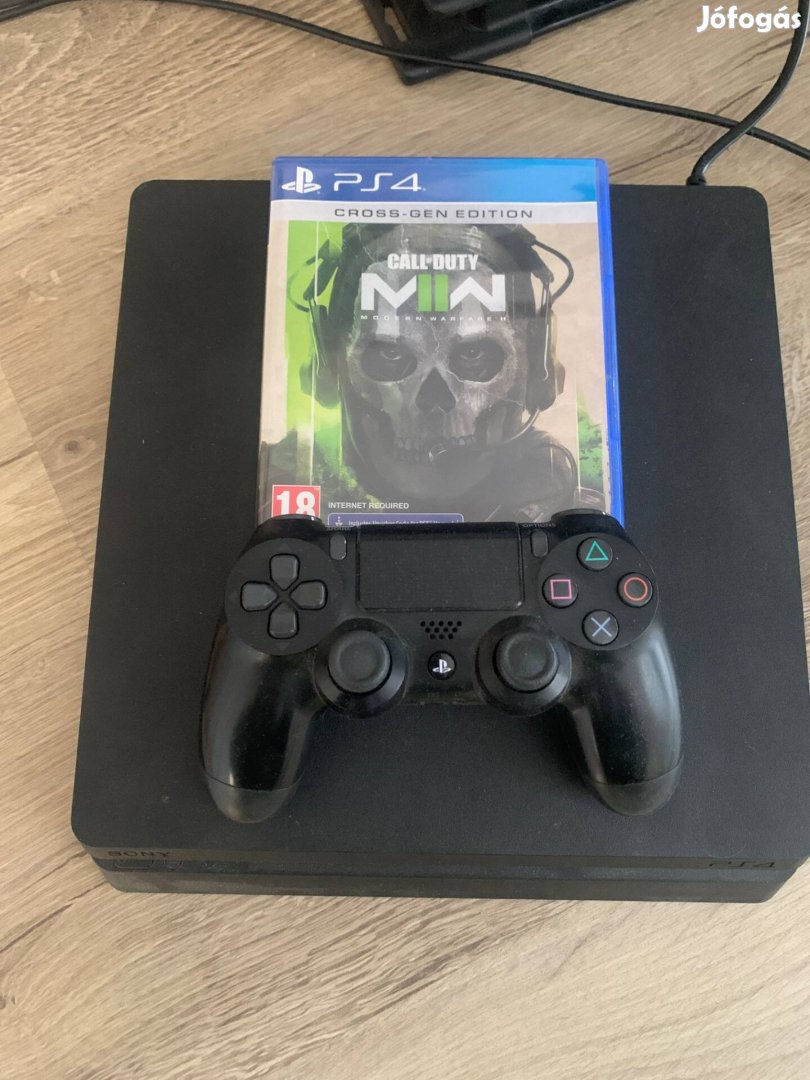 Eladó alig használt PS4 konzol (1TB), kontroller, eredeti Call of Duty játék CD-vel.
