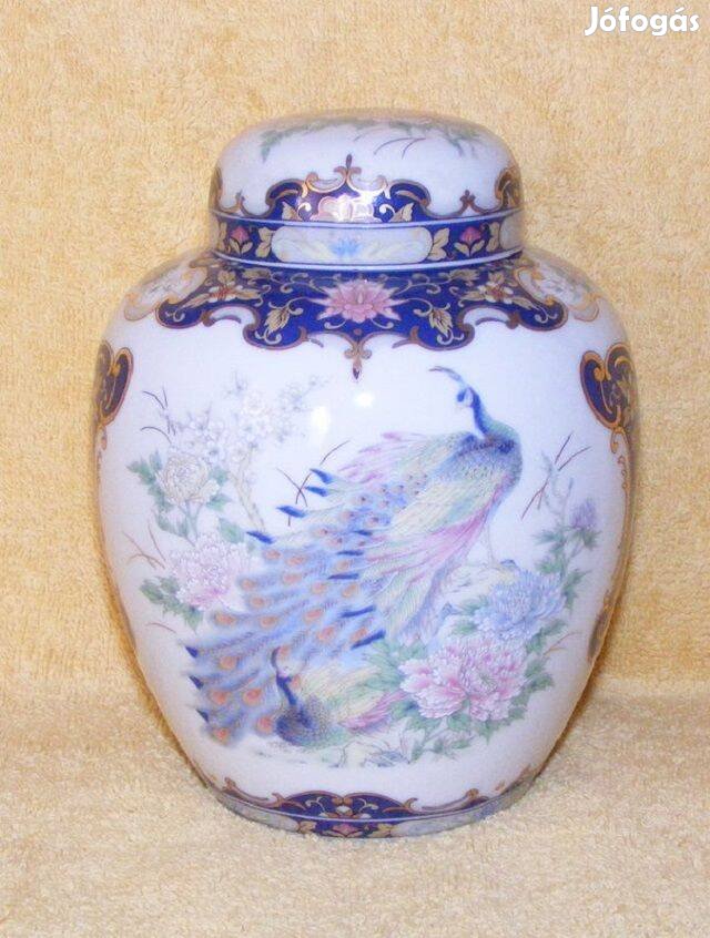 Pávás fedeles porcelán váza