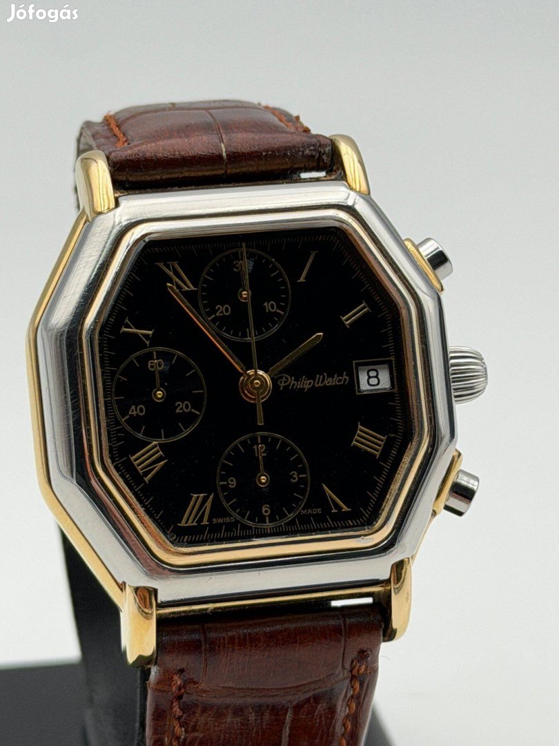 Eladó egy karakteres megjelenésű, svájci gyártású Philip Watch Chronograph Automatic Ref. 4007 karóra a 1980-as évekből, klasszikus kronográf kialakítással és megbízható automata szerkezettel.
