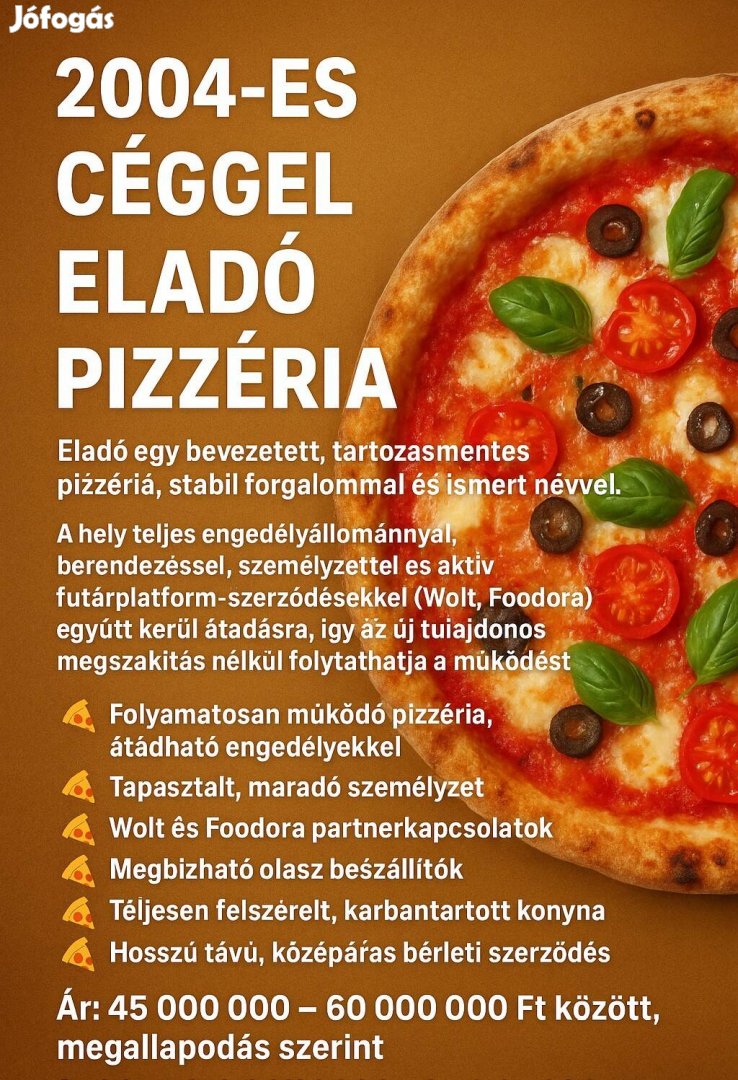 Eladó bevezetett pizzéria - működő, tartozásmentes céggel
