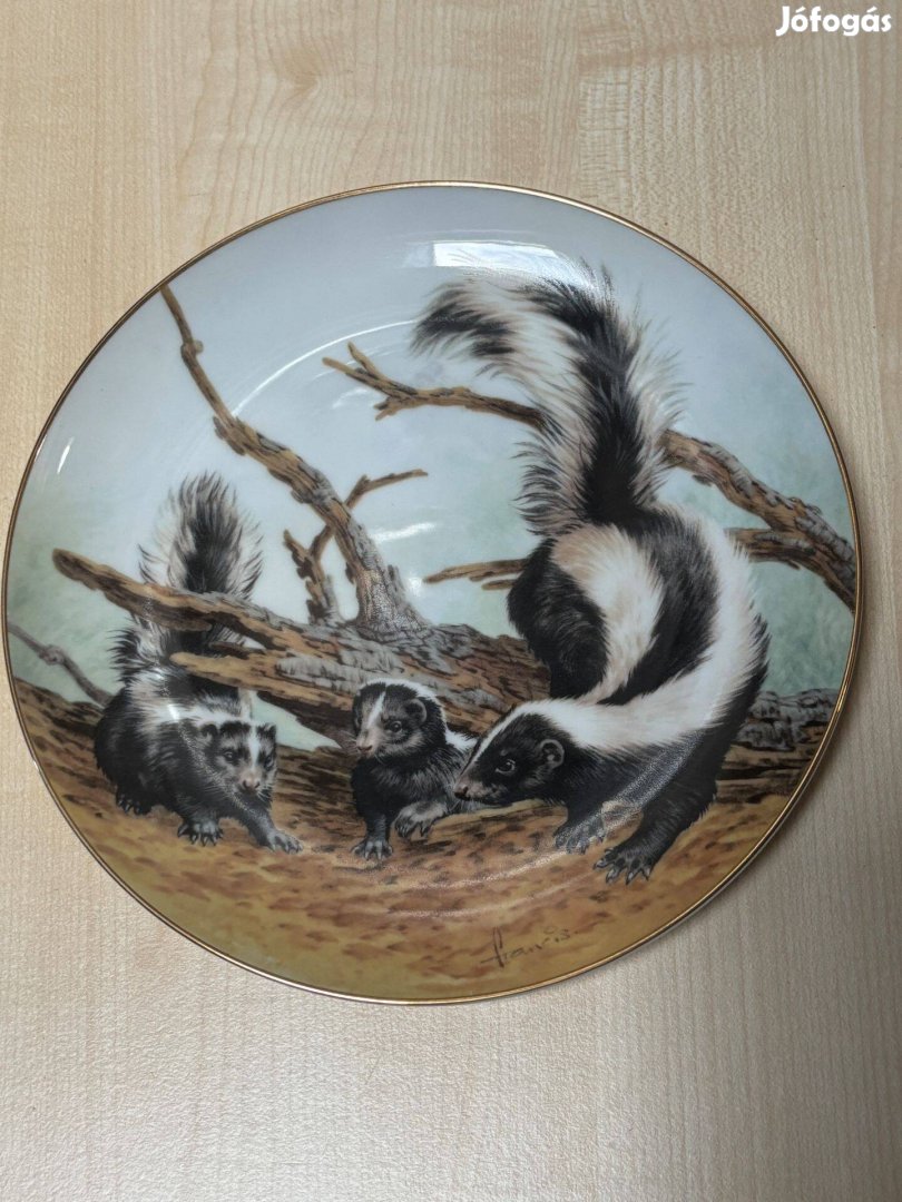 Porcelán falitányér, falidísz, állat, borz