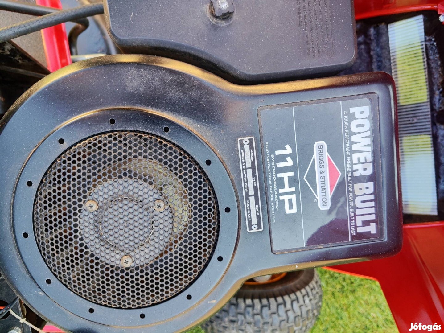 Rally fűnyíró traktor kétkéses vágóasztalal mechanikus váltóval 11 lóerős briggs motorral