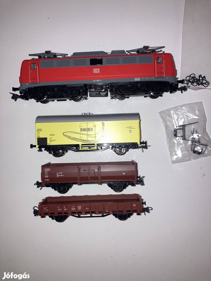 Eladó a képeken látható start szettes szerelvény sztirol tartójában. A mozdonyt megtisztogattam és kentem rajta, működik szépen. Fehér/piros fényei vannak. Az egyik áramszedőn festék-hiány van sajnos, az egyik képen látható. A kiegészítői nem biztos, hogy ehhez tartoznak, de talán beépíthetőek. A vagonok közül a banános egyik kuplungtartója hiányzik sajnos, valamint a kiegészítői sérültek. Kérésre több képet, a mozdony működéséről videót tudok küldeni. Helyileg Győrben van, postázni tudom. Esetenként Budapesten a börzén is átvehető.