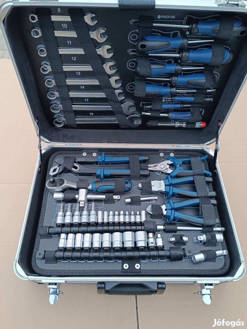 A Scheppach TB 150 egy nagyon praktikus készletet (101 db) kofferben, mely tartalmazza az általánosan leghasználatosabb szerszámokat.