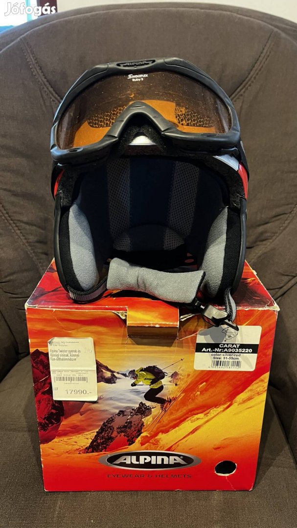 Alpina (gyerek 10-13 éves) sí sisak 1 hetet használt ajándék sí szemüveggel eladó.