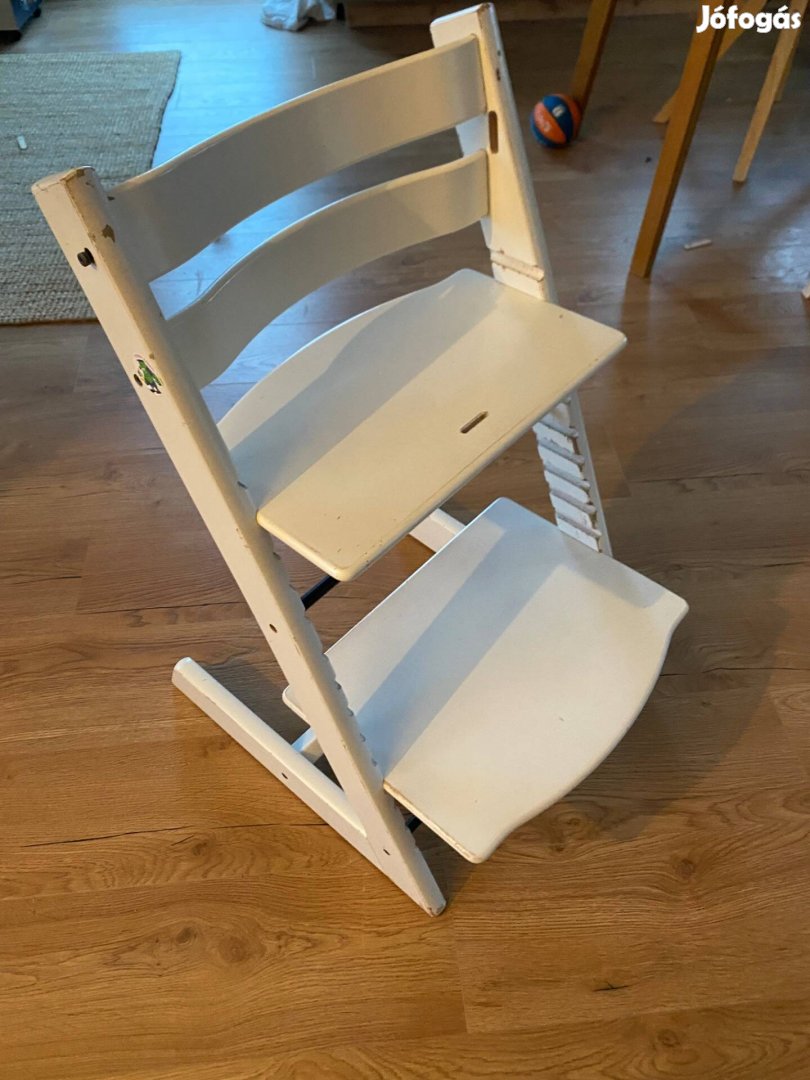 Eladó stokke etetőszék, használatból eredő karcok, kopások vannak rajta a sarkokon.