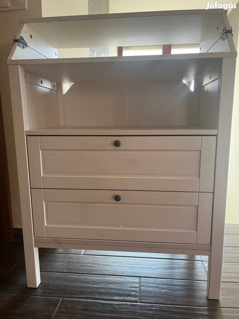 Eladó egy jó állapotban lévő Ikea Sundvik pelenkázóasztal / fiókos szekrény, használatból eredő kisebb kopásnyomokkal, de hibátlan szerkezeti állapotban.