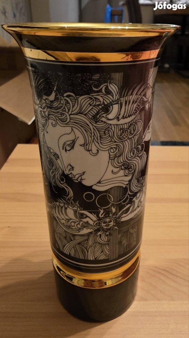 20cm magas, Hollóházi, Szász Endre, Adria váza, hibátlan állapotban