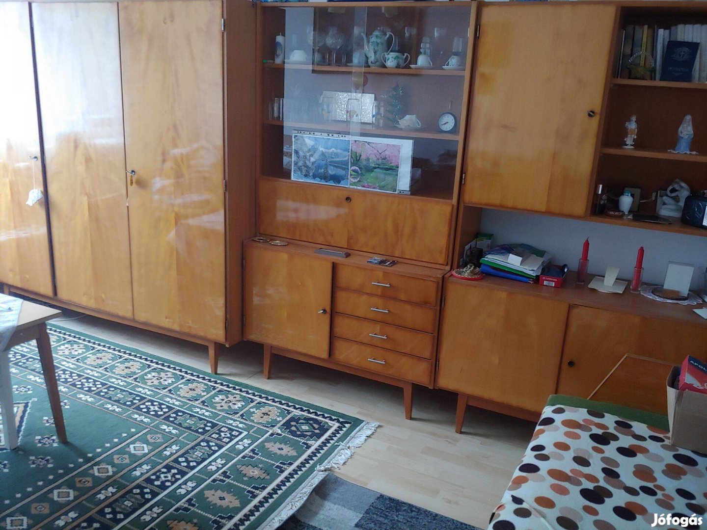Akasztós, polcos, vitrines, fiókos elemek szép és jól kihasználható állapotban megvásárolhatók.
