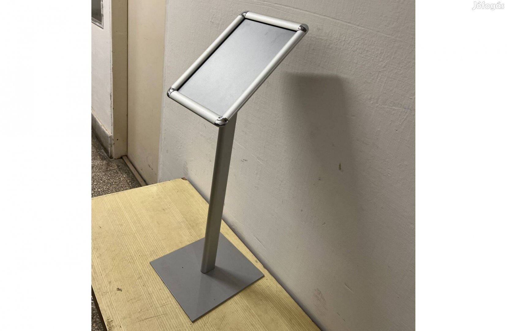 A/4-es lap amely egy mozdulattal cserélhető a keret felhajtásával majd lezárással vízálló kopásálló átlátszó víztiszta lemezzel.