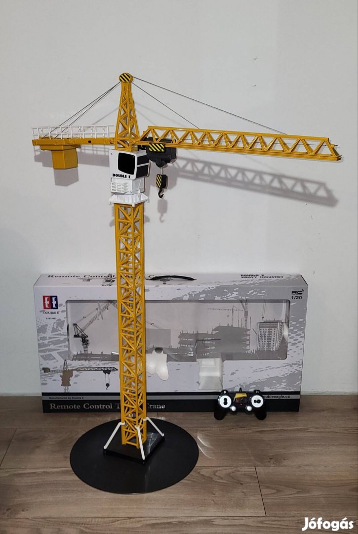 Double E 360°-ban forgatható, licencelt toronydaru 1:20 méretarányban, minden típusú jármű és építőgép rajongóinak. Kiváló minőségű műanyagból tervezték és gyártották.