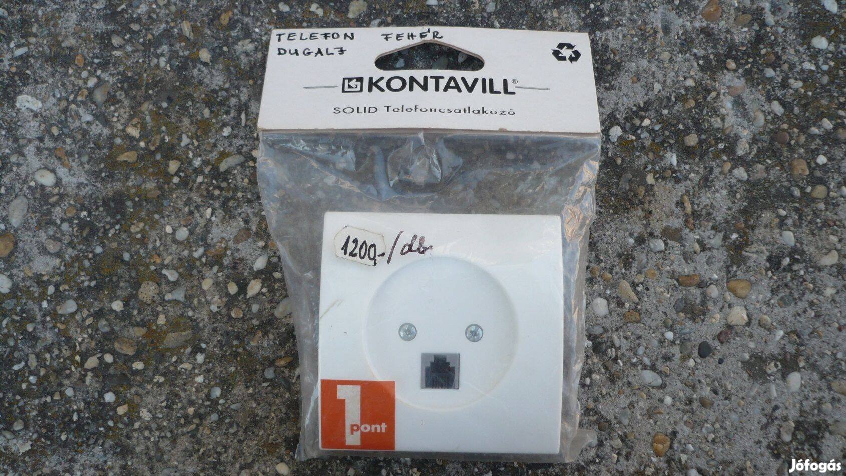 Eladó telefon csatlakozó aljzat. Teljesen új, sosem használt, bontatlan csomagolású. Kontavill gyártmány. Fehér színű. Gazdabolt felszámolásából maradt meg. Olcsón eladó, máshol 1000-be kerül.