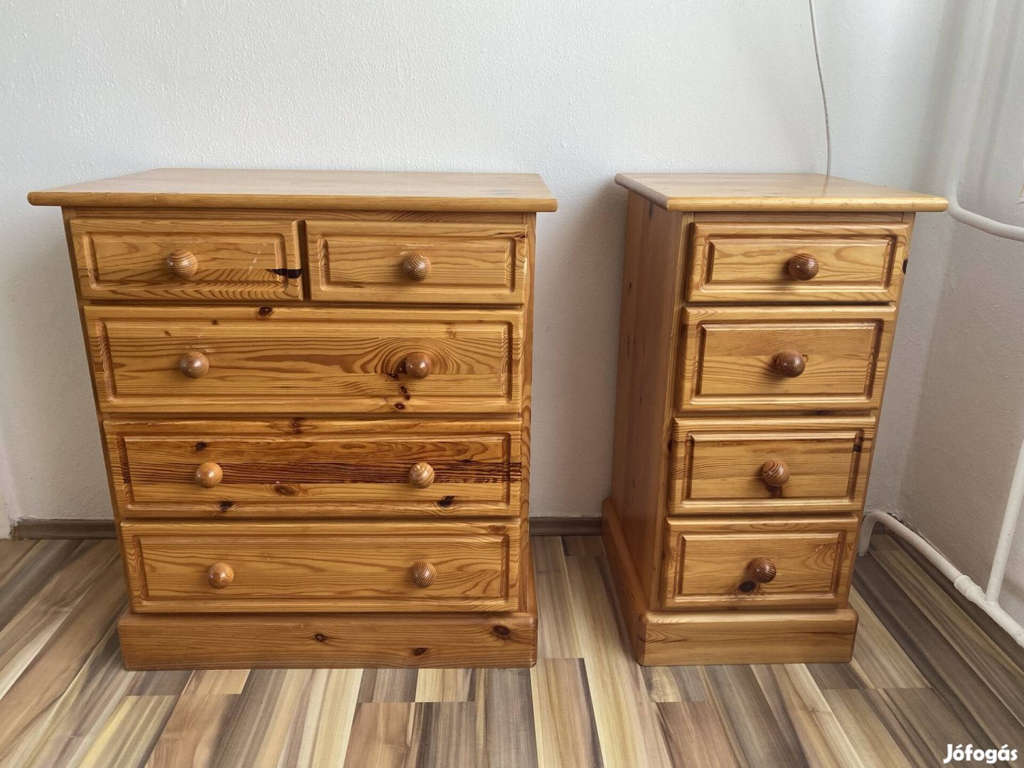 Tömör fenyő komód + fiókos szekrény eladó - jó állapot