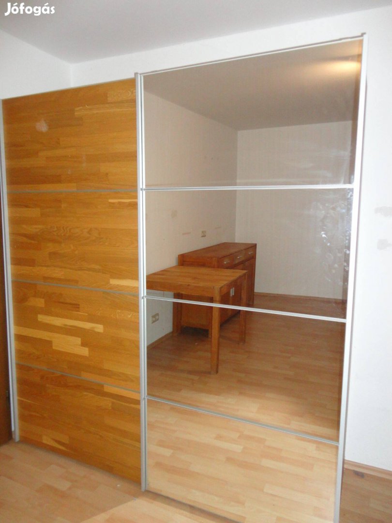 Eladó egy nagyon szép tolóajtós gardróbszekrény nagyon szép állapotban.Az egyik tolóajtó tükrös, a másik tölgyfa furnér.A szekrény nagyon stabil.
