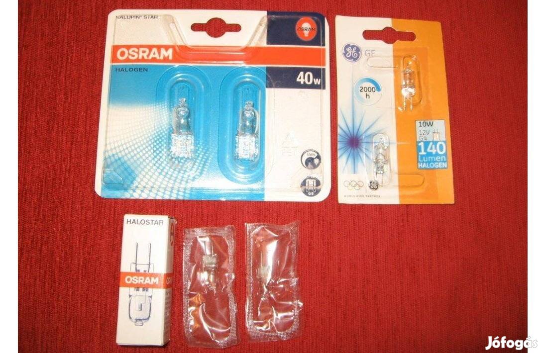 6 db tűlábas halogén izzó együtt eladó. 2 db: 40W 230V G9 420Lm 2700K; 2 db: 10W 12V G4 140 Lm 2800K; 2 db: M47 20W 12V G4. Ára: 1000 Ft.