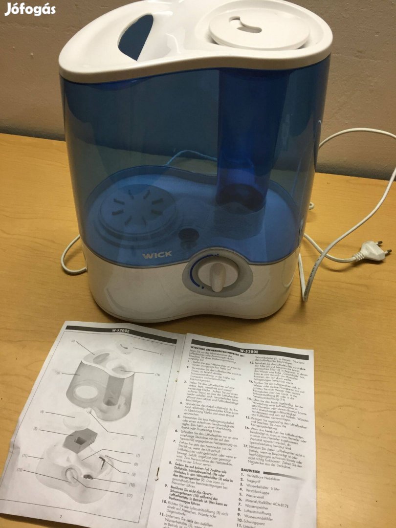 Új! még nem használt ultrahangos párásító készülék német nyelvű használati utasítással.