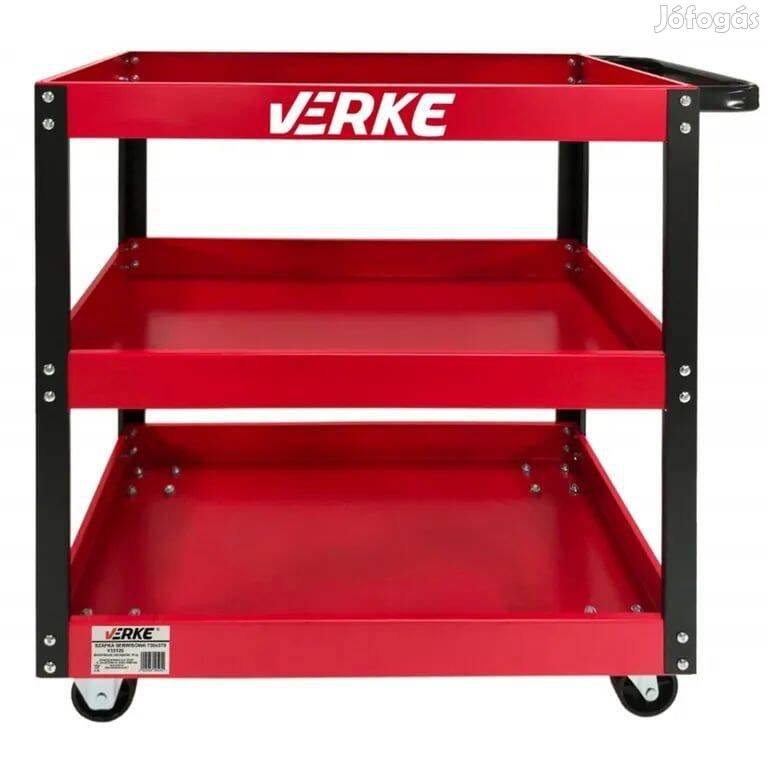 Praktikus 3 szintes műhelykocsi. A szekrény teherbírása 136 kg és 70 x 30 cm méretű. A műhelykocsi kerekekkel van felszerelve.