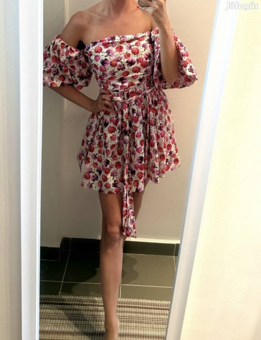 Csodaszép Zara nőies fazonú virágos, derékban megkötős ruha!S-es méret(Xs-S), lemért méretek a képek között vannak!100% pamut anyagú!