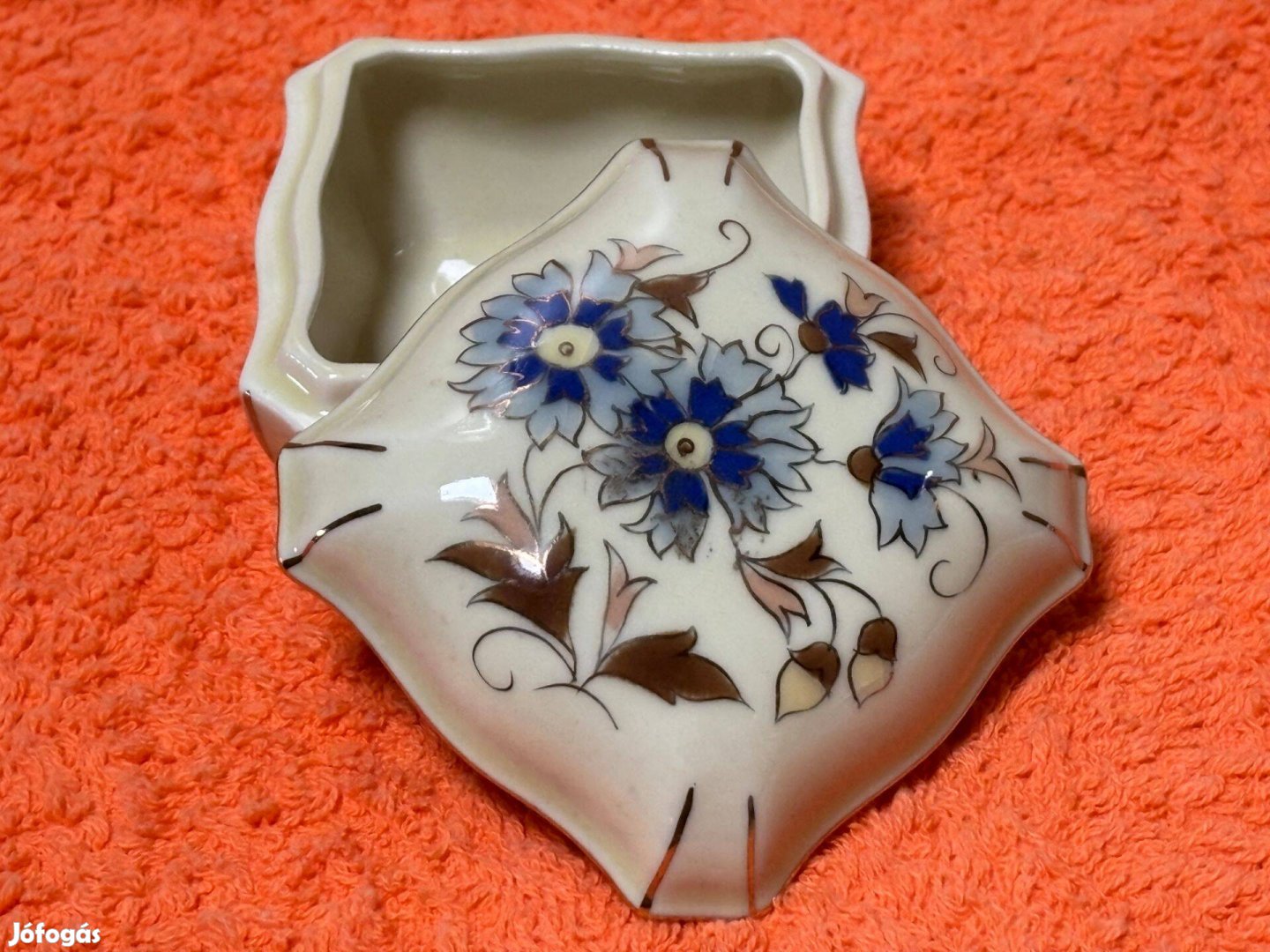 Zsolnay porcelán ékszertartó doboz búzavirág mintával